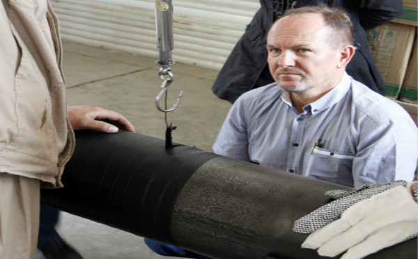 涂刷防腐膠帶配套底漆一遍+聚乙烯膠帶分別選用0.5mm或0.6mm內帶和外帶各以50~55%搭接繞帶,各有兩層來完成防腐層厚度≥2.0mm。