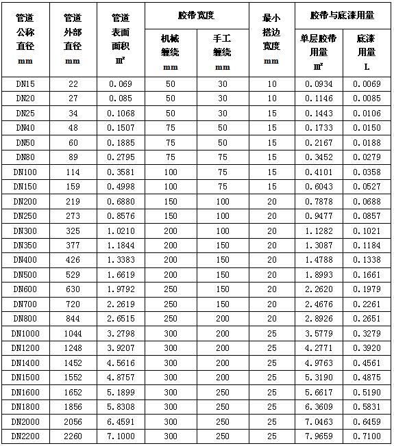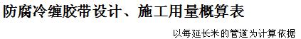防腐冷纏膠帶設(shè)計、施工用量概算表