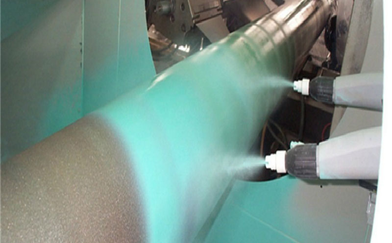 3、采用靜電噴涂方法進(jìn)施工作業(yè)(電壓60--90kv之間,噴涂距離150--200mm之間),涂覆厚度100-150um。